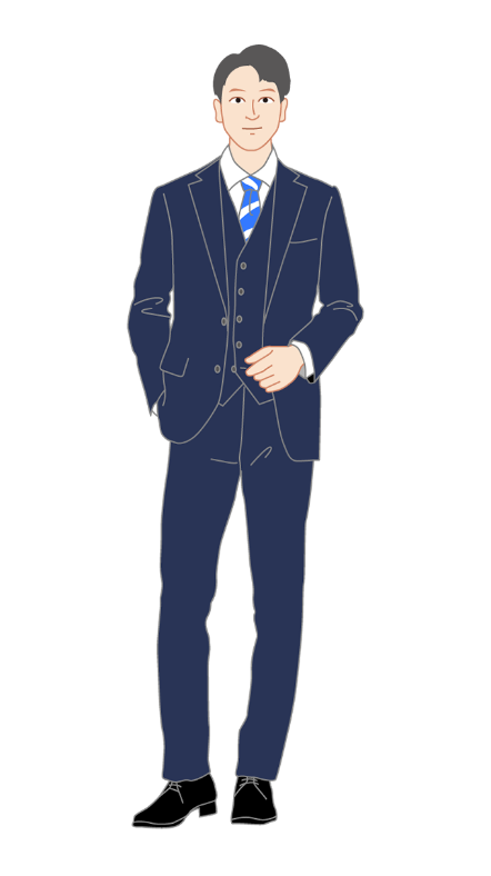 紋付羽織袴は、男性の正装とされる和服です。イラストのような黒い羽織とグレーの袴が一般的です。