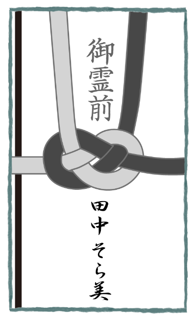 「御霊前」は、どの宗教にも使えます。下半分の中央に自分の名前を書きます。