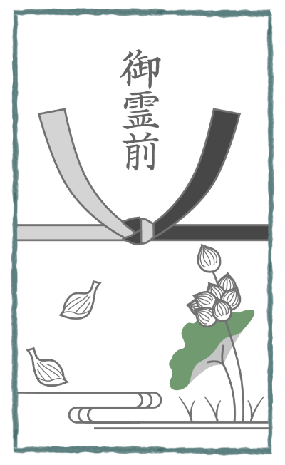 蓮の絵柄が入っている不祝儀袋は、仏教に限定されます。上半分には、「お香典」と書いてもかまいません。