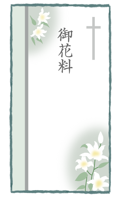 キリスト教の場合は、水引がない白封筒でもよい。印刷されているものが市販されています。