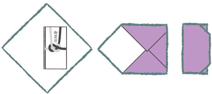 通夜や葬式の際は左開きになるように包む